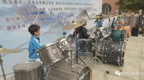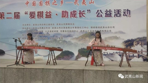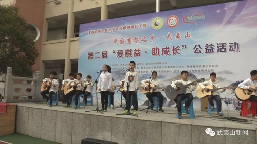 活動現場,前來參加公益活動的小棋士們帶來了架子鼓、吉他、古箏等節目,通過表演為即將開始的公益競拍和愛心義賣活躍氣氛。