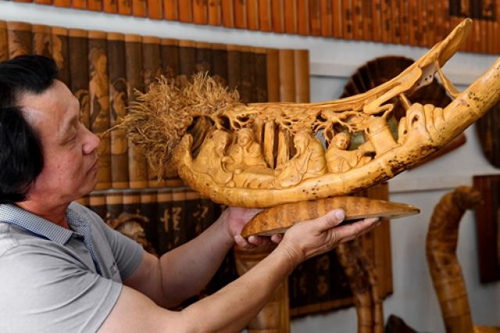 5月9日,福建省工藝美術(shù)大師張棟華展示自己的作品。(新華社記者張國(guó)俊 攝)