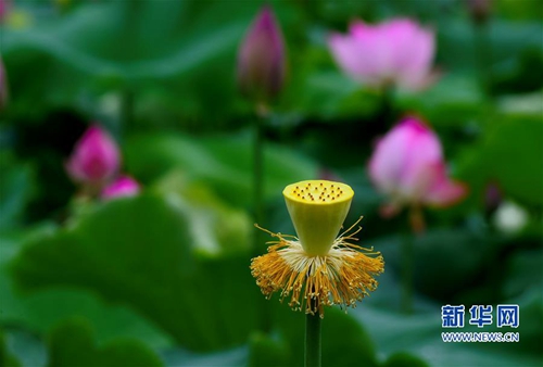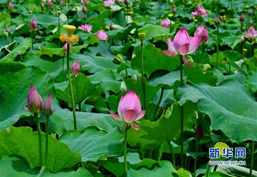 這是7月12日拍攝的武夷山市五夫鎮萬畝荷塘的荷花。新華社記者 張國俊 攝
