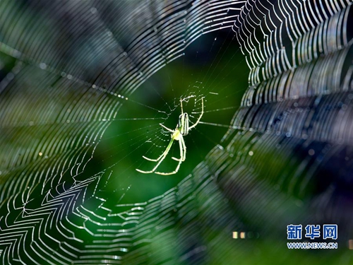 一只蜘蛛在武夷山國家公園腹地山林中等待獵物(8月24日攝)。新華社記者 姜克紅 攝