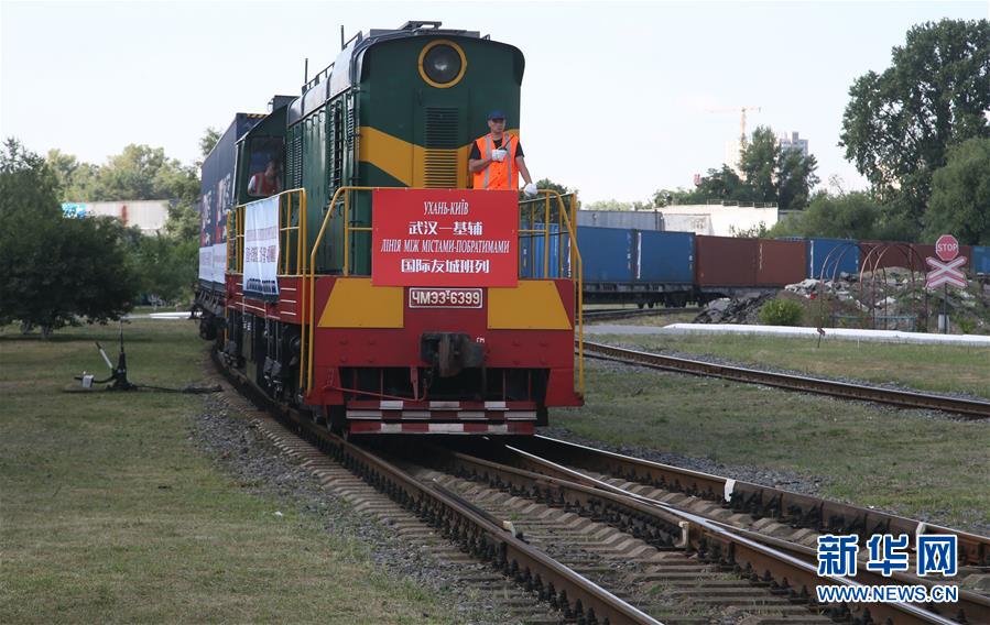 7月6日,由中國武漢發出的“武漢-基輔”中歐班列駛入烏克蘭首都基輔市利斯基貨運站。 中國和烏克蘭兩國代表6日在基輔市利斯基貨運站舉行活動慶祝漢歐國際“武漢-基輔”中歐班列首班抵達。該班列是中國華中地區首列直達烏克蘭的中歐班列。 新華社發(謝爾蓋·斯塔拉斯堅科 攝)