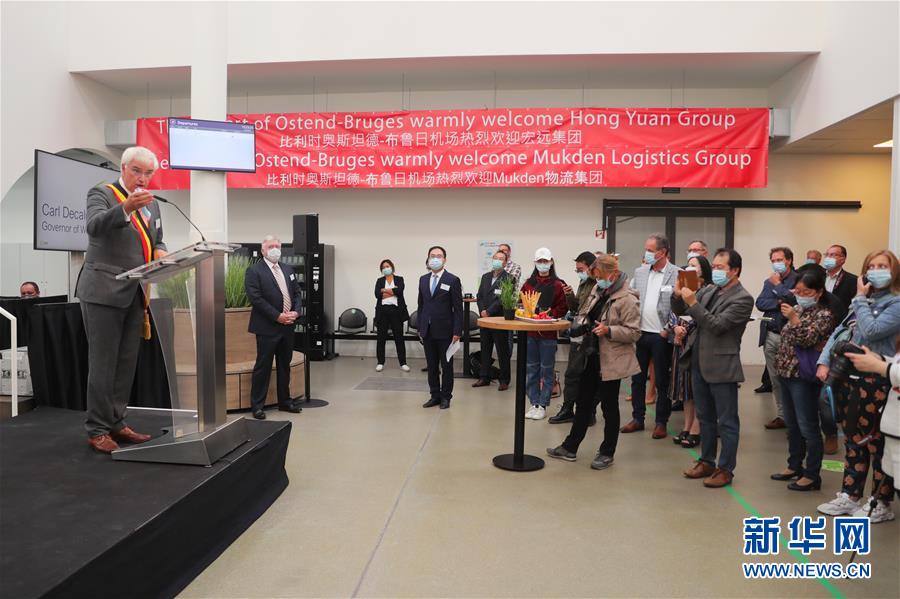 9月24日,在比利時奧斯坦德的奧斯坦德—布魯日機(jī)場,比利時西佛蘭德省省長卡爾·德卡呂韋在儀式上致辭。 比利時奧斯坦德—布魯日機(jī)場24日舉行隆重儀式,歡迎北京宏遠(yuǎn)集團(tuán)的貨運(yùn)航班正式入駐。這標(biāo)志著連接該機(jī)場與中國多地的“空中絲綢之路”新航線正式開通。 新華社記者 鄭煥松 攝