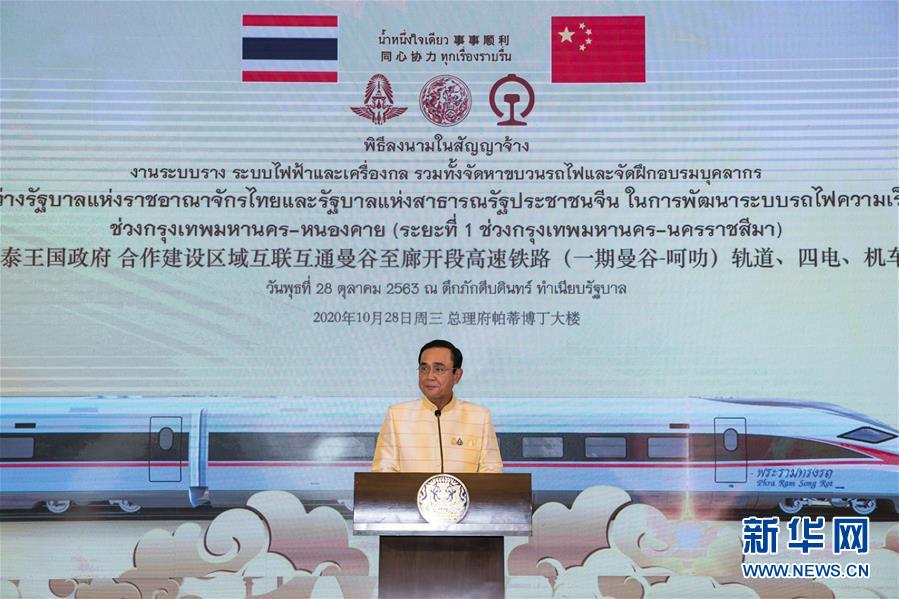 10月28日,泰國總理巴育在泰國總理府出席中泰鐵路合作項目一期(曼谷—呵叻段)線上工程2.3合同簽約儀式。據中國駐泰國大使館消息,中泰鐵路合作項目一期(曼谷-呵叻段)線上工程2.3合同簽約儀式28日在泰國總理府舉行。 新華社記者 張可任 攝