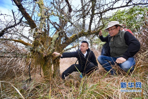 12月1日,來自北京大學的生態學碩士姚剛(左)與武夷山國家公園工作人員考察黃崗山植被。新華社記者 姜克紅 攝