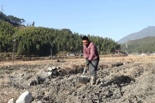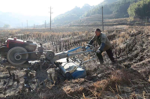 1月12日,福建武夷山市崇安街道黃墩村民用手扶拖拉機在耕地。福建武夷山市崇安街道黃墩村發動村民開展冬季生產,變冬閑為冬忙,農業機械、中青年勞力紛紛下田開展冬季生產,耕地、整畦、種植竹蓀等。(邱汝泉 文/圖)