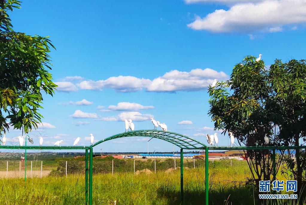 2020年4月4日,在剛果(金)盧阿拉巴省科盧韋齊市紫金礦業旗下穆索諾伊公司礦區,一群小白鷺在此停留。新華社發