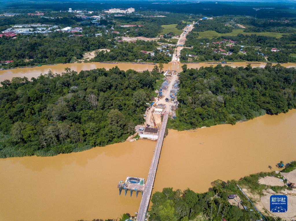 這是11月9日在馬來西亞彭亨州淡馬魯縣拍攝的建設(shè)中的馬東鐵項(xiàng)目30號(hào)橋(無人機(jī)拍攝)。新華社記者 朱煒 攝