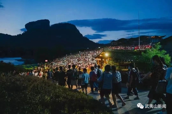 國慶假日正式開啟,武夷山市以具有地方特色文化底蘊的多元業態夜間經濟,吸引游客盡情體驗豐富多彩的夜生活,點燃城市夜經濟。 夜幕降臨,華燈初上,來自全國各地的游客,在夜風的涼爽里,走進了印象大紅袍劇場,觀看武夷“山、水、茶”自然生態文化和人文民俗風情完美結合的山水實景秀,在光影交錯中如夢如幻的感受流轉千年的茶文化。 福州游客林先生說:“非常震撼,不管是舞美、文化、畫面,還有心靈上的震撼,我覺得都非常完美,我們的茶文化、中國文化有一個很好教育意義,所以我以后還會再帶身邊更多的人來這邊觀看。”