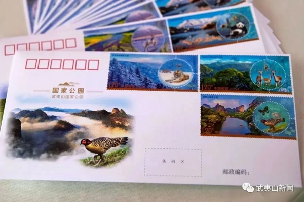 《國家公園》紀念郵票1套5枚,郵票圖案名稱分別為三江源國家公園、大熊貓國家公園、東北虎豹國家公園、海南熱帶雨林國家公園和武夷山國家公園,以攝影作品為基礎,全套郵票面值6.00元,計劃發行760萬套。這套郵票突出了五個國家公園絢麗的自然景觀和豐富的生態資源,是一套具有極高收藏價值和紀念意義的“國家名片”。 武夷山郵政分公司副總經理黃宏章:“對比以前的普通郵票,這次設計的是70毫米乘35毫米的大票幅。左側是國家公園的一個自然景觀,中間是國家公園部分代表性的動物,最右側是國家公園的部分代表性植物。" 這枚就是屬于武夷山國家公園的郵票,局部圓型打孔部分,使用無色橘熒光油墨在紫光燈下觀察有望遠鏡效果,也使野生動物畫面更加生動。