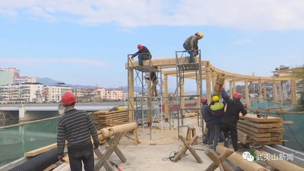 “水美城市”項目作為我市重點項目工程之一。連日來,項目施工方克服疫情影響、搶抓晴好時節,抓緊水美城市二期項目重要節點建設,力爭在2024年底全線貫通,建設“好風景”,帶動“好生活”。 記者在位于崇安大橋東側的施工現場看到,工人們正在進行木結構棧橋的模板安裝工作,為平臺的安裝、鋪設做足準備。在木材加工區域,工人忙著進行木板切割、木藝雕刻,為棧橋增添武夷風文化藝術氣息,為市民、游客提供休閑、散步的好去處,在水美好風景中感受好生活。