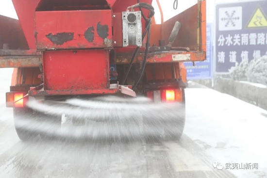 南平市公路事業發展中心武夷山分中心在國道237分水關路段撒融冰劑(邱汝泉)