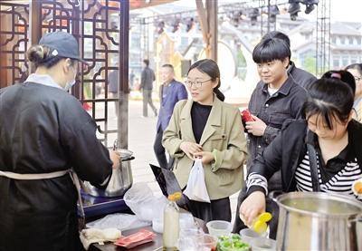 游客排隊購買閩北特色美食 欣賞建本拓印、延平戰(zhàn)勝鼓等非遺技藝,品嘗順昌灌蛋、嵐谷熏鵝等閩北美食……17日,“武夷迎賓客 福聚山水城”八閩美食嘉年華活動在武夷山水城火熱進(jìn)行中,讓游客和市民體驗了閩北非遺文化與美食的魅力。 本次活動由南平市商務(wù)局、市文旅局、武夷旅游集團有限公司主辦,旨在充分發(fā)揮南平生態(tài)人文資源和世界“雙遺產(chǎn)”品牌優(yōu)勢,打響武夷山水城特色街區(qū)新名片,提升街區(qū)人氣與活力,促進(jìn)文化旅游消費,加快推動南平“迎賓客引人流,促消費促發(fā)展”。 活動現(xiàn)場,特色非遺項目依次呈現(xiàn),游客們不僅能近距離觀賞非遺技藝,還能參與其中,感受非遺的魅力。美食區(qū)香氣四溢,12種非遺美食讓游客大快朵頤。現(xiàn)場還設(shè)置精釀啤酒吧,開展銀聯(lián)促消費活動,打造出多元化的消費場景。 此次活動于12日開始,將持續(xù)至本月底。其間,主辦方將舉辦南平市第六屆花朝盛典,身著漢服的人們通過宋式游園互動體驗,感受古代文人雅士的閑情逸致。“‘非遺技藝+閩北美食’將持續(xù)匯聚人氣、傳承經(jīng)典、拉動消費,吸引更多游客前來探秘閩北非遺、品味當(dāng)?shù)靥禺a(chǎn),共同書寫南平文旅融合的新篇章。”活動有關(guān)負(fù)責(zé)人表示。(記者 羅光耀 文/攝) |