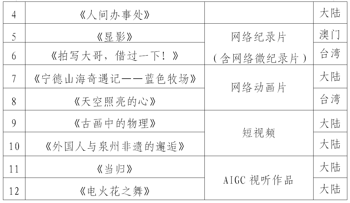 第十屆海峽兩岸青年網絡視聽優秀作品展以“融合發展 攜手未來”為主題,面向兩岸青年從業創作者征集原創網絡微電影、微短劇、網絡紀錄片(含網絡微紀錄片)、網絡動畫片、短視頻、網絡電影、AIGC視聽作品等七個單元網絡視聽作品共1954部,其中臺灣地區150部,香港、澳門等地區投稿71部,征集作品數量和質量再創歷屆活動新高,并首次在兩岸視聽作品征集中開設AIGC賽道。經評委會評選推薦,確定12部最佳作品和2部評委會特別推薦作品,獲表彰作品后續將在兩岸高校、新媒體平臺進行展播。本屆優秀作品傳達了兩岸青年對青春奮斗、創新創業、生活審美的思考和感悟,構建了向上向善的共同記憶。